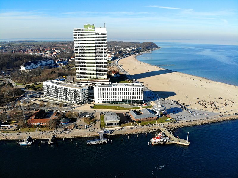 | Das Hotel Maritim in Travemünde. Deutschland, Schleswig-Holstein 24.02.2019; Flug Nr. 017 |