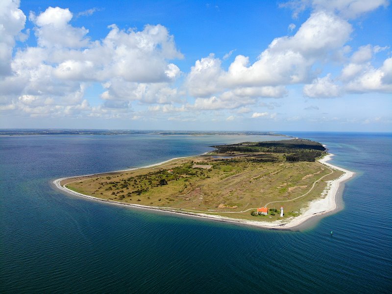 | Die Südspitze der Insel Samsø mit dem Vesborg Fyr. Dänemark, Region Midtjylland 04.05.2019; Flug Nr. 069 |