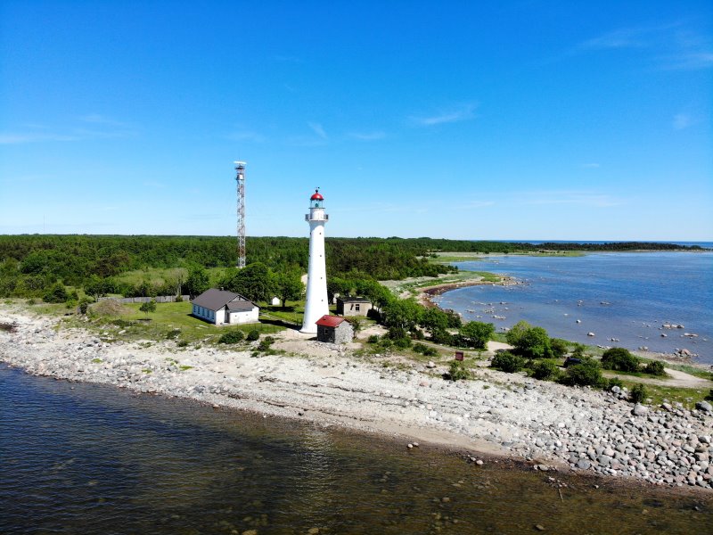 | Der Leuchtturm "Sőrve tuletorn" auf der Insel Saaremaa. Estland, Saare maakond. 05.06.2019; Flug Nr. 121 |