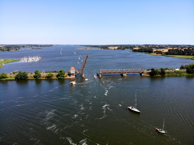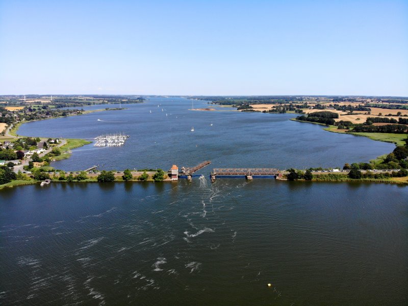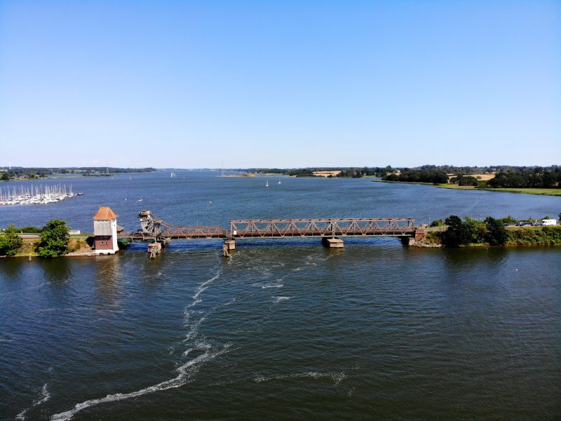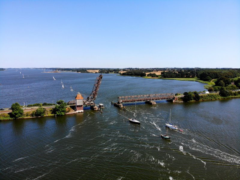 | Die Lindaunisbrücke über die Schlei. Deutschland, Schleswig-Holstein. 26.07.2019; Flug Nr. 156 |
