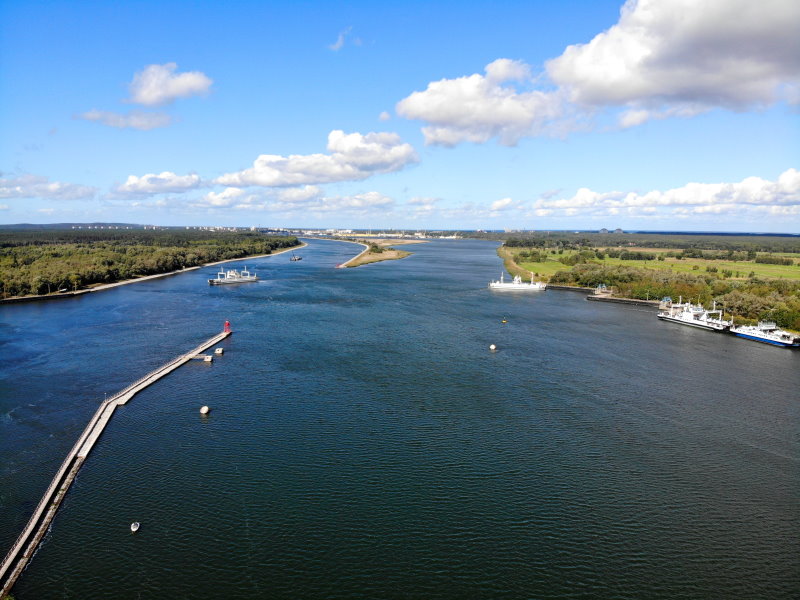 | Die Hafenausfahrt von Swinoujscie. Polen, Województwo zachodniopomorskie. 14.09.2019; Flug Nr. 188 |
