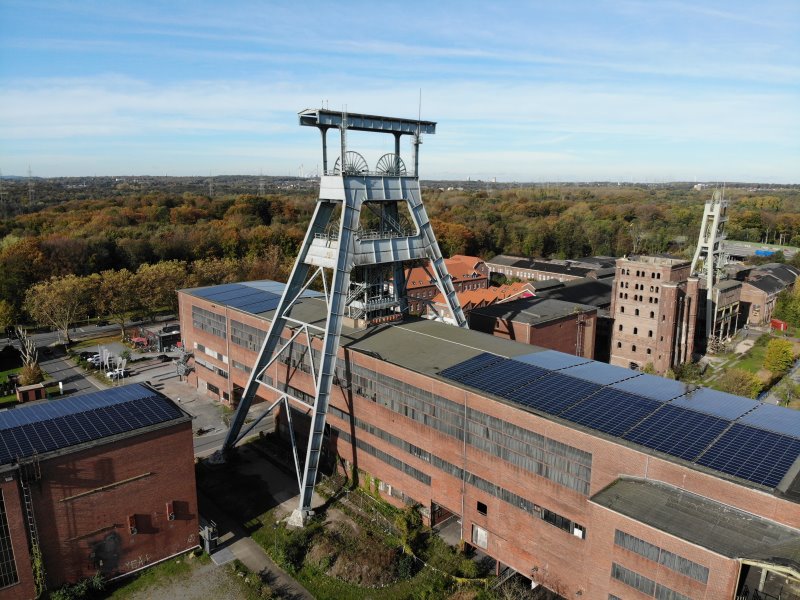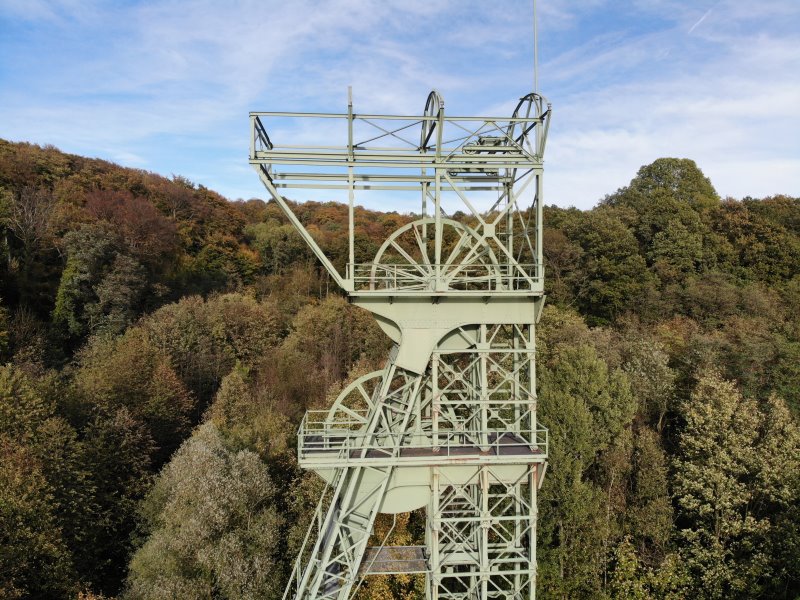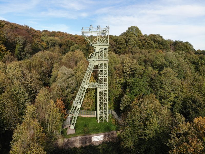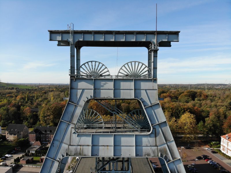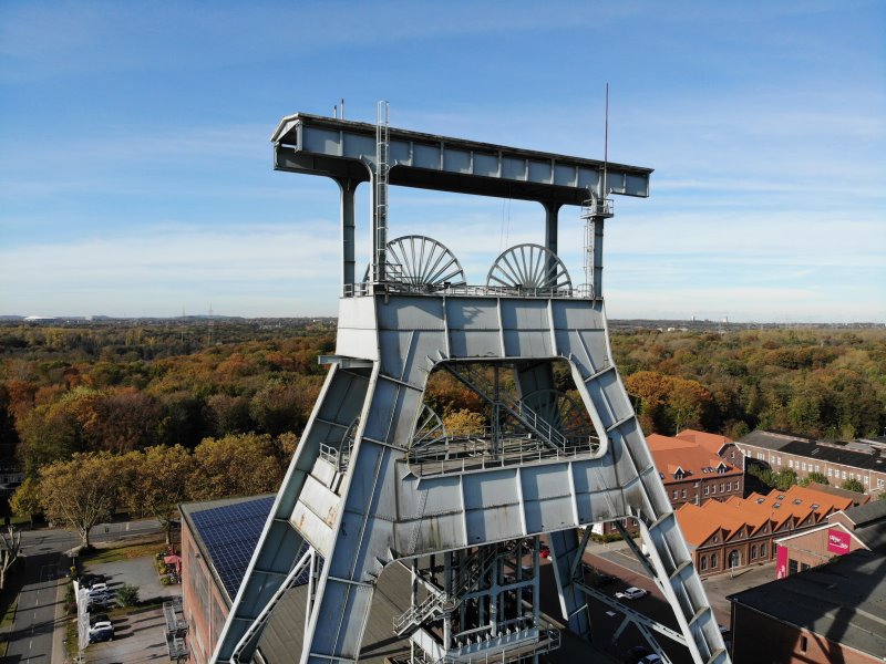 | Das Fördergerüst der ehemaligen Zeche Carl Funke in Essen. Deutschland, Nordrhein-Westfalen. 26.10.2019; Flug Nr. 204 |