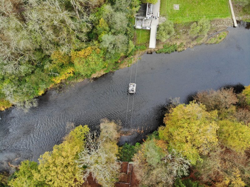 | Die Schwebefähre über die Wupper im Mügstner Brückenpark. Deutschland, Nordrhein-Westfalen. 27.10.2019; Flug Nr. 206 |