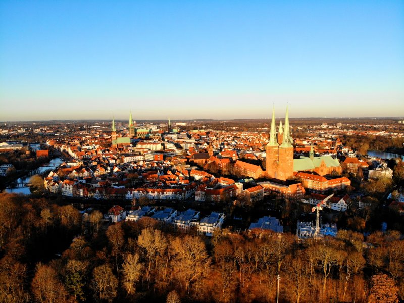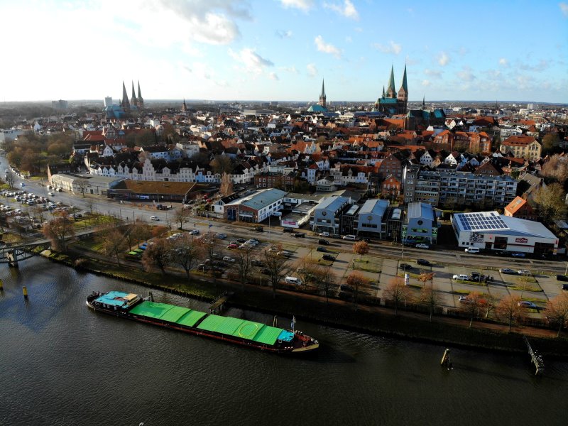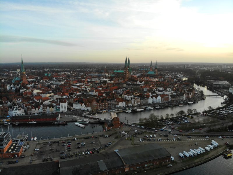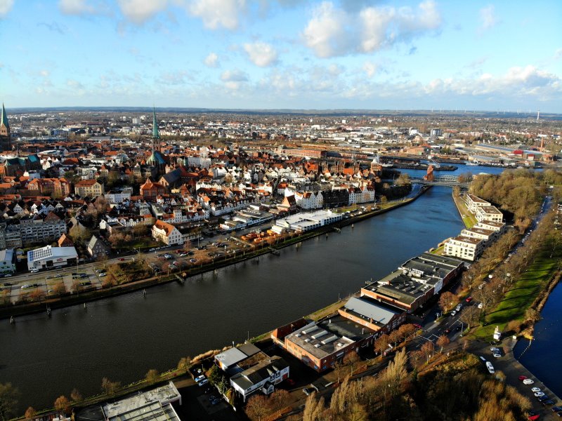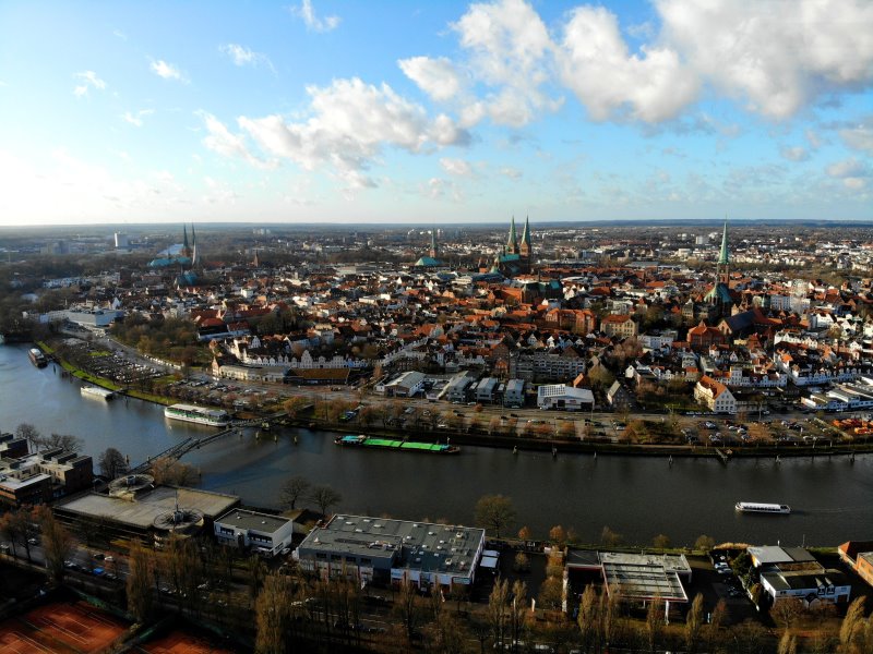 | Blick auf die Hansestadt Lübeck Deutschland, Schleswig-Holstein. 10.12.2019; Flug Nr. 214 |