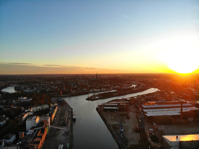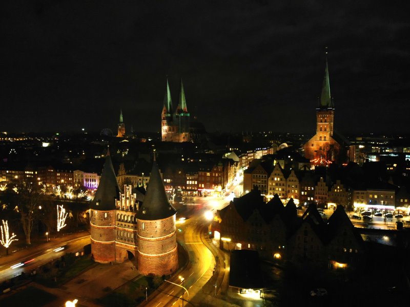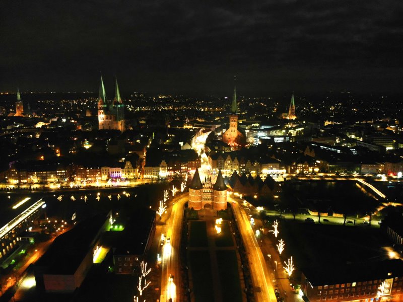 | Ein mutiger Flug zur Wheihnachtszeit über Lübeck. Deutschland, Schleswig-Holstein. 12.12.2019; Flug Nr. 215 |