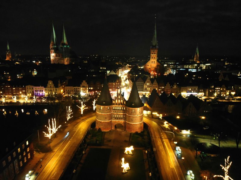 | Ein mutiger Flug zur Wheihnachtszeit über Lübeck. Deutschland, Schleswig-Holstein. 12.12.2019; Flug Nr. 216 |