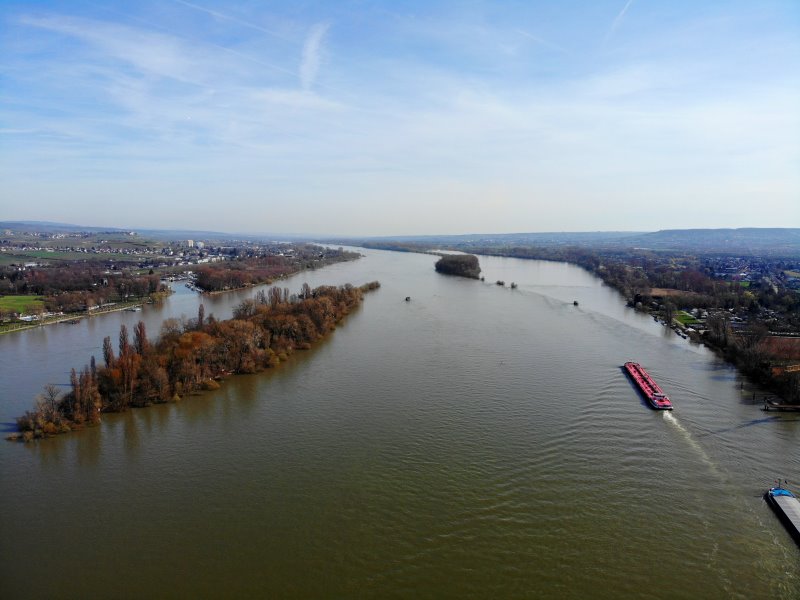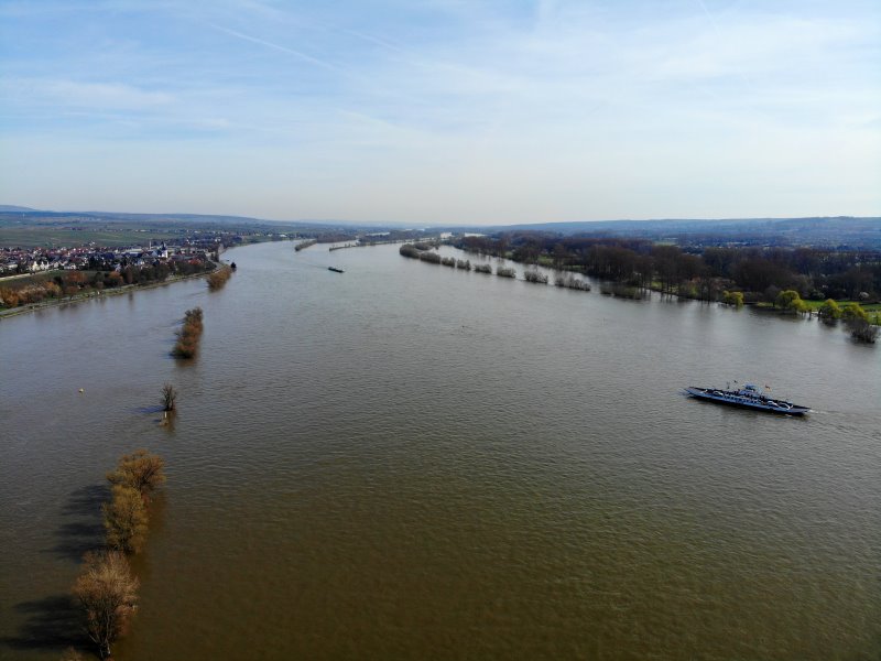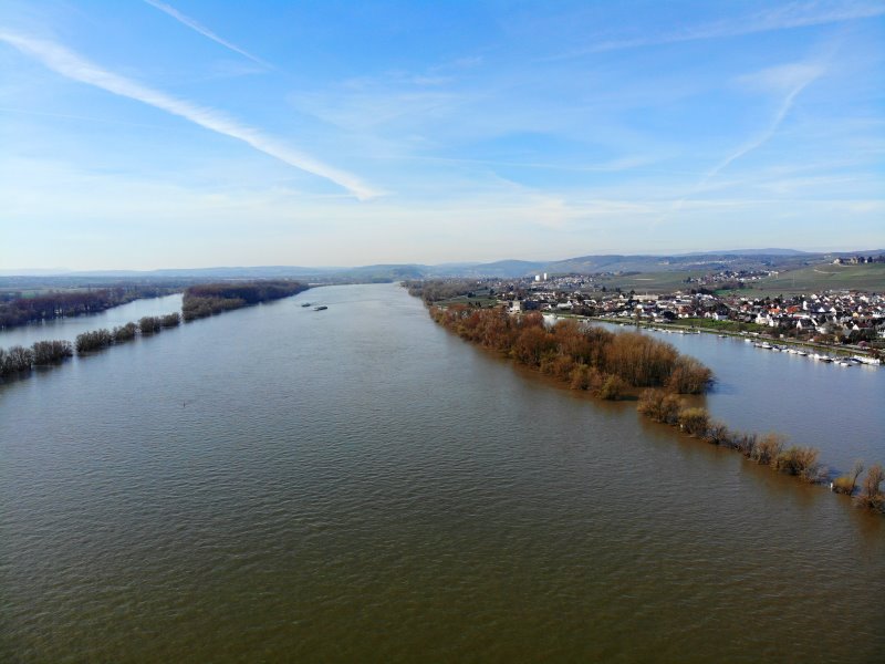 | Der Rhein bei Ingelheim. Deutschland, Rheinlan-Pfalz 15.03.2020; Flug Nr. 252 |