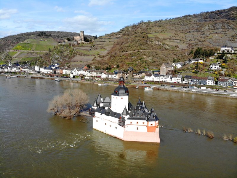 | Die Burg Pfalzgrafenstein und Kaub. Deutschland, Rheinland-Pfalz 15.03.2020; Flug Nr. 256 |