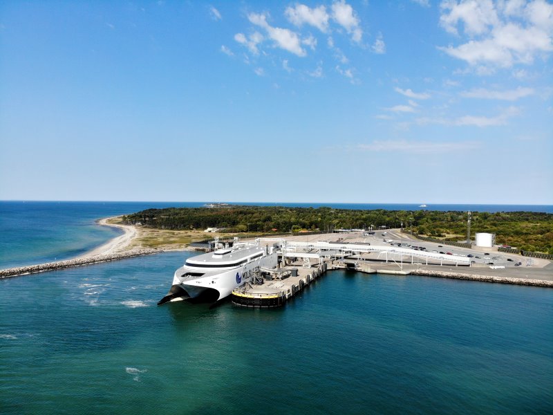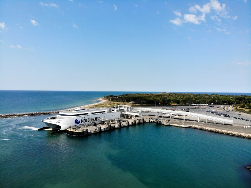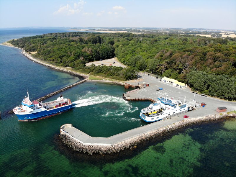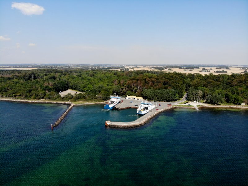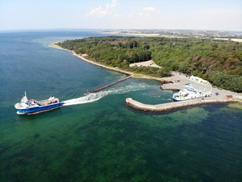 | Der Fährhafen von Sjællands Odde mit der Fähre nach Århus. Dänemark, Sjælland 11.08.2020; Flug Nr. 355 |