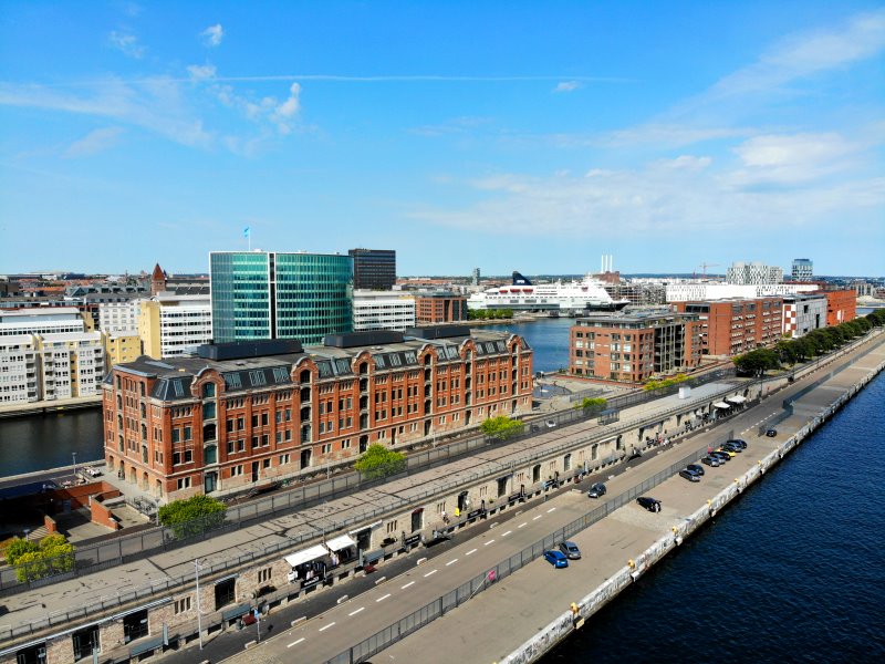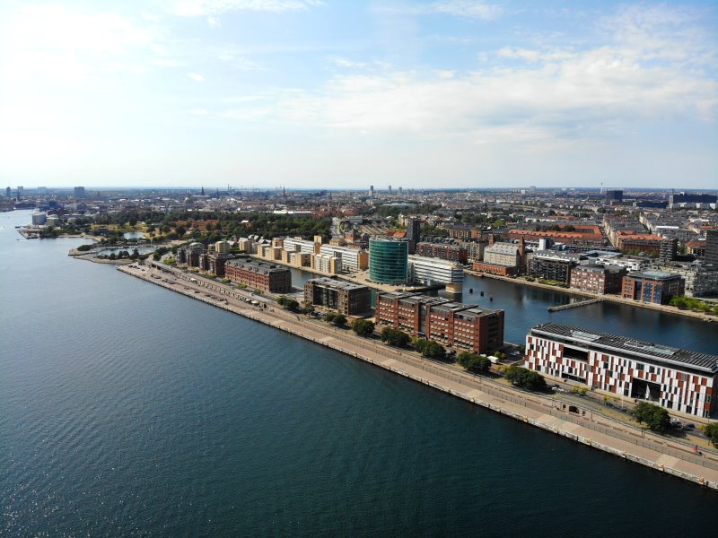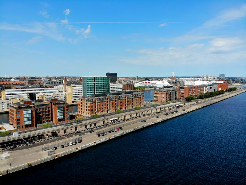 | Blick über die Langenliniekaj zum Freihafen von Kopenhagen. Dänemark, Sjælland 12.08.2020; Flug Nr. 361 |