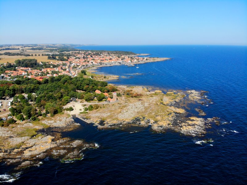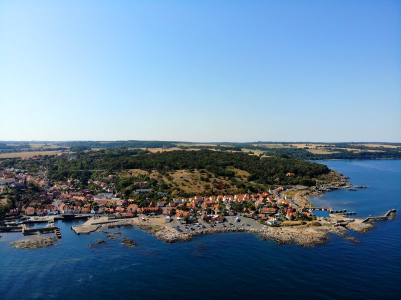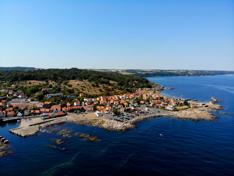 | Blick auf Gudhjem. Dänemark, Bornholm 16.08.2020; Flug Nr. 378 |