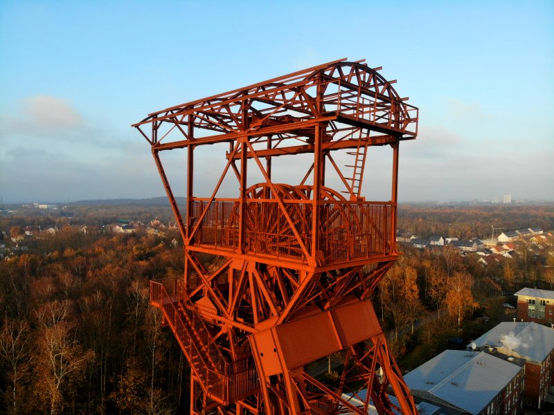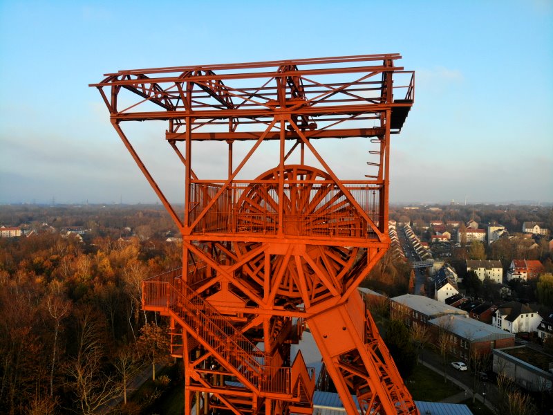 | Der Gerüskopf vom Schacht Marie der Zeche Amalie in Essen. Deutschland, Nordrhein-Westfalen 28.11.2020; Flug Nr. 450 |