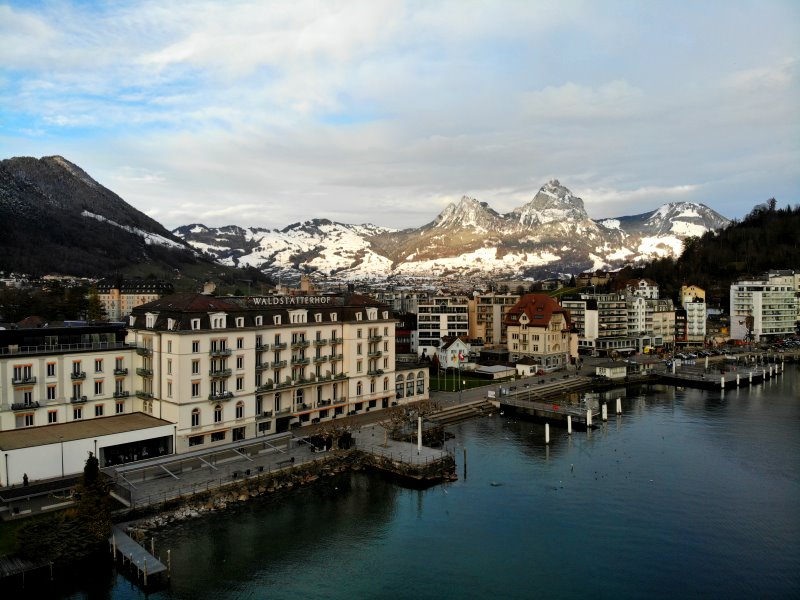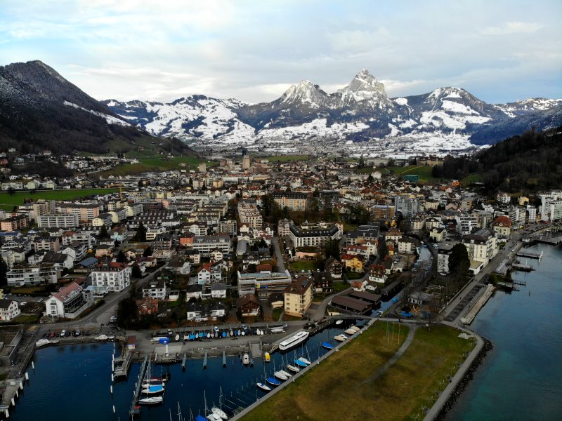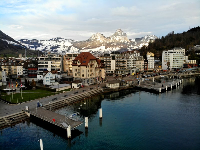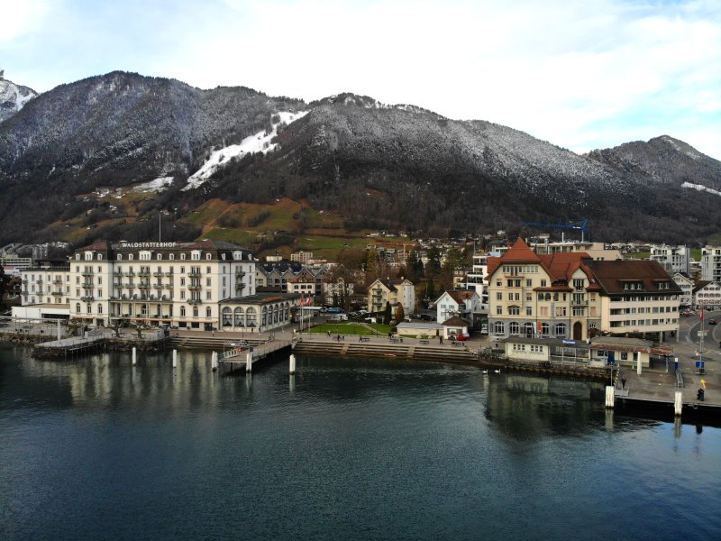 | Blick auf Brunnen. Schweiz, Kanton Schwyz 23.01.2021; Flug Nr. 464 |