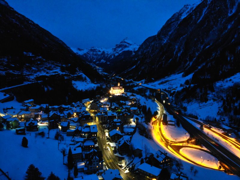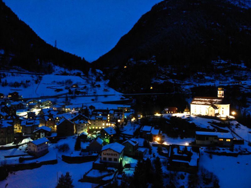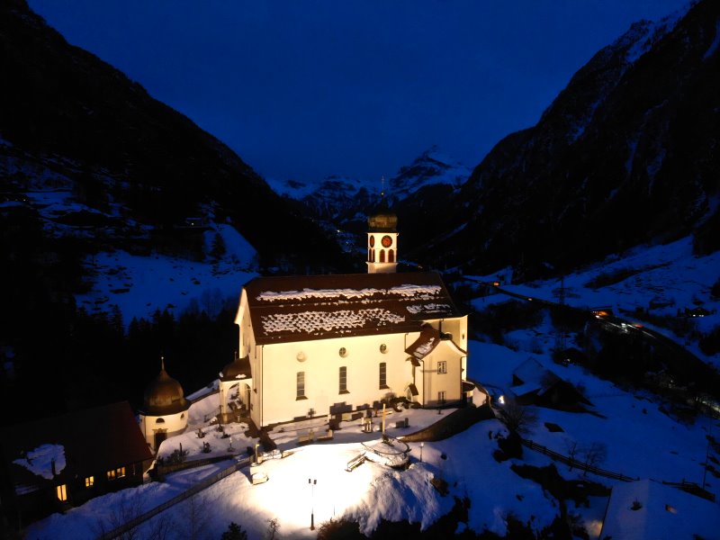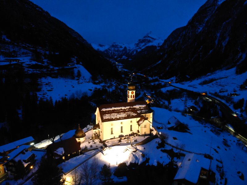 | Blick auf die Kirche Wassen. Schweiz, Kanton Uri 23.01.2021; Flug Nr. 465 |