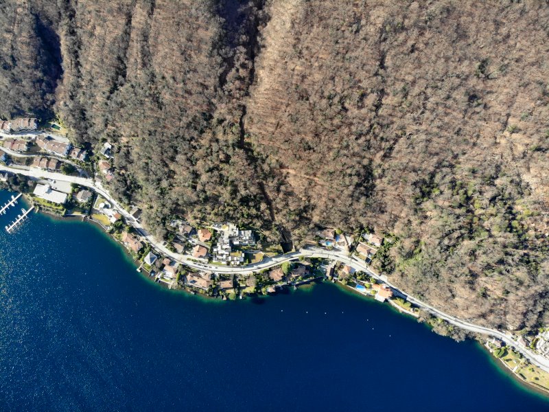 | Flug über den Lago di Lugano mit Blick auf das Ufer von Colombaio. Schweiz, Kanton Tessin 24.01.2021; Flug Nr. 468 |