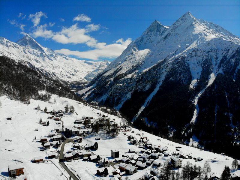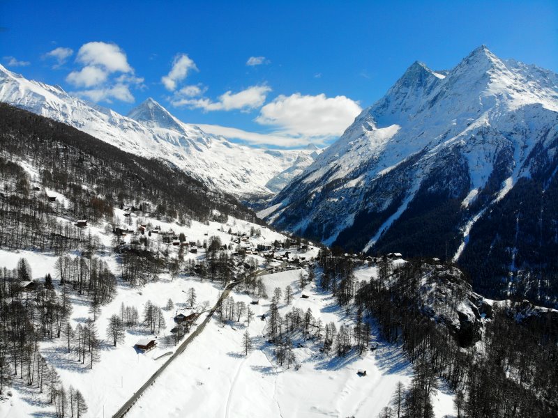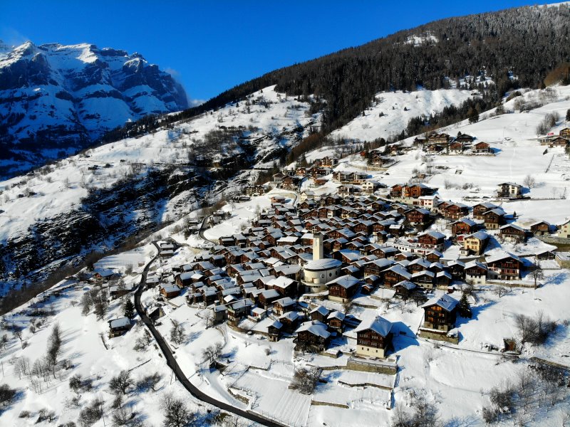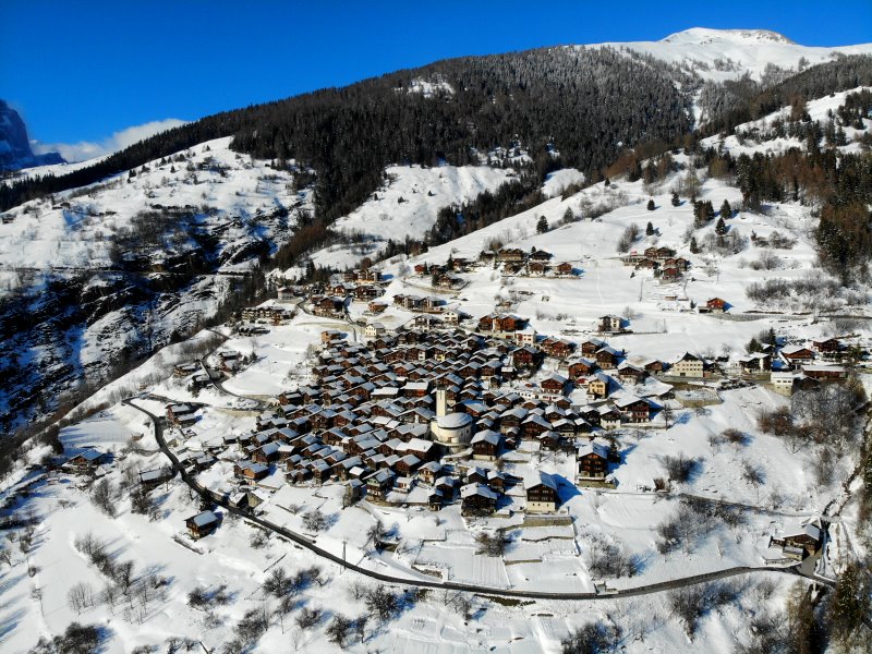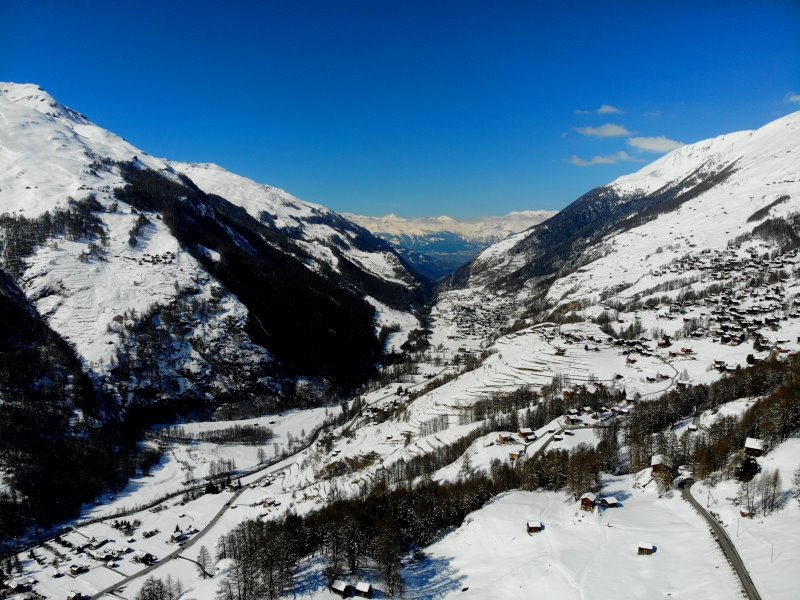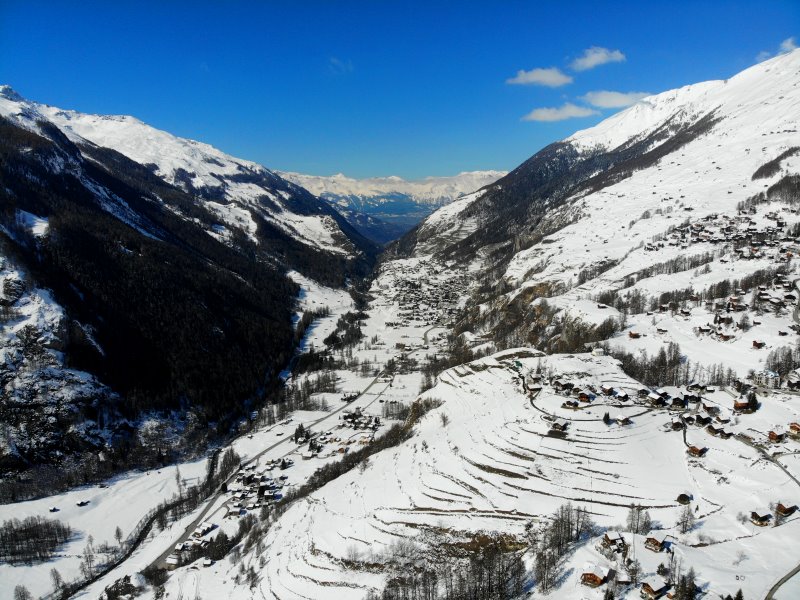 | Blick auf Les Haudères. Schweiz, Kanton Wallis 20.03.2021; Flug Nr. 496 |