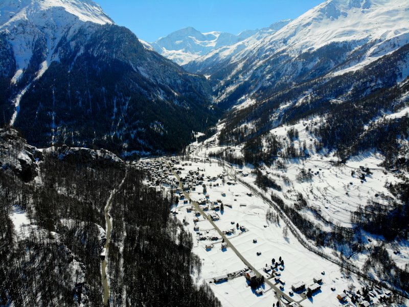 | Blick auf La Sage, Villa und Evolene. Schweiz, Kanton Wallis 20.03.2021; Flug Nr. 496 |