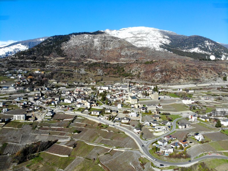 | Blick auf Leuk. Schweiz, Kanton Wallis 20.03.2021; Flug Nr. 497 |