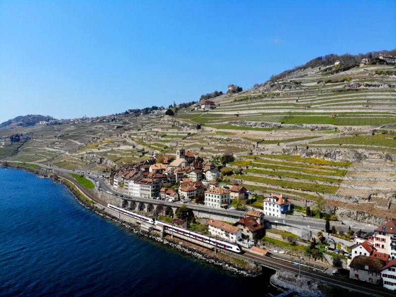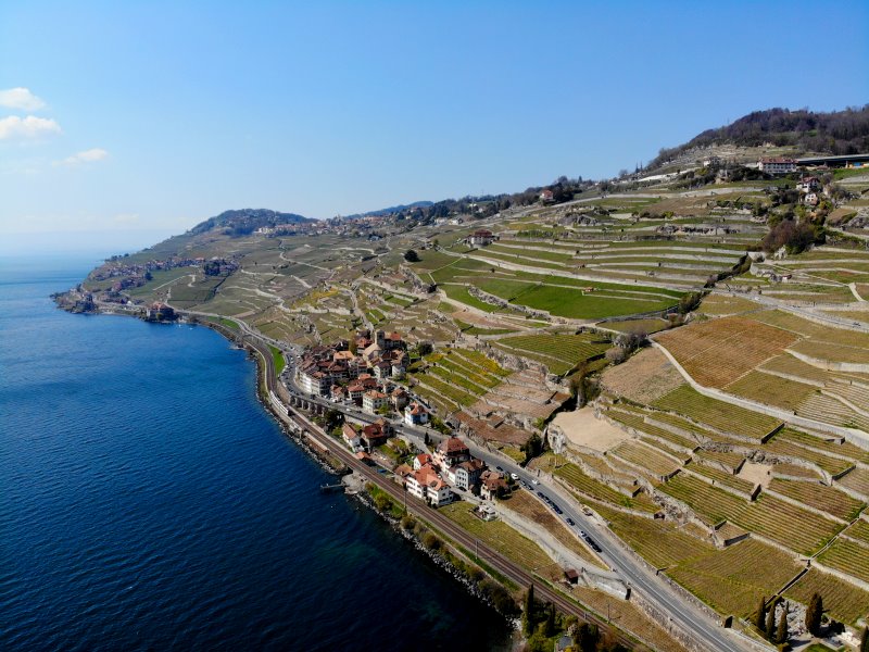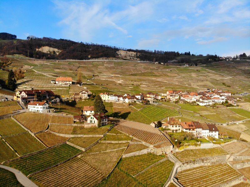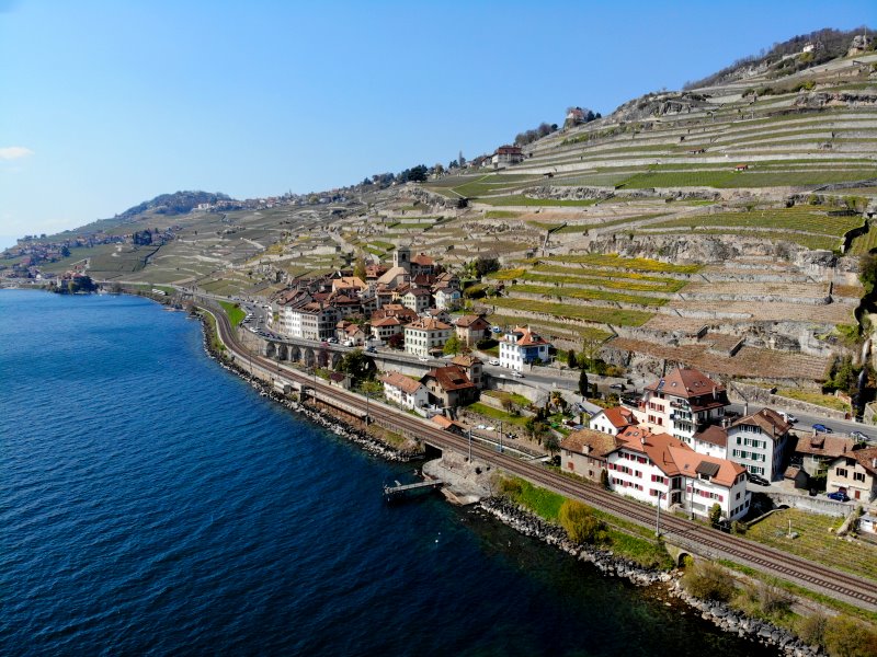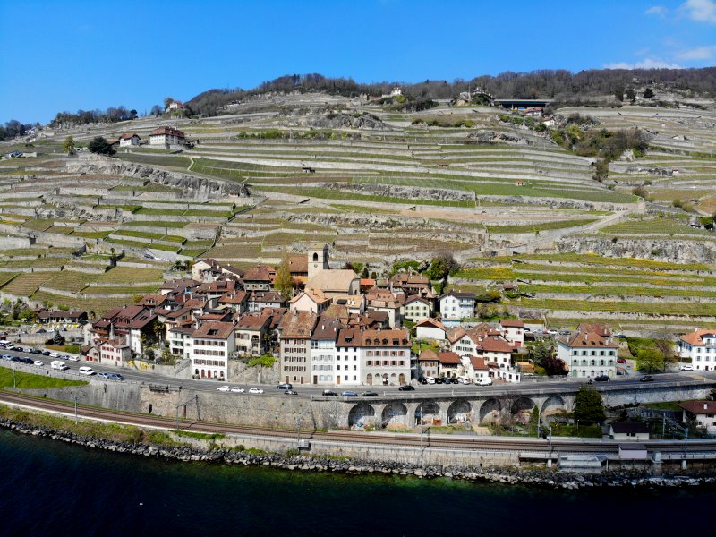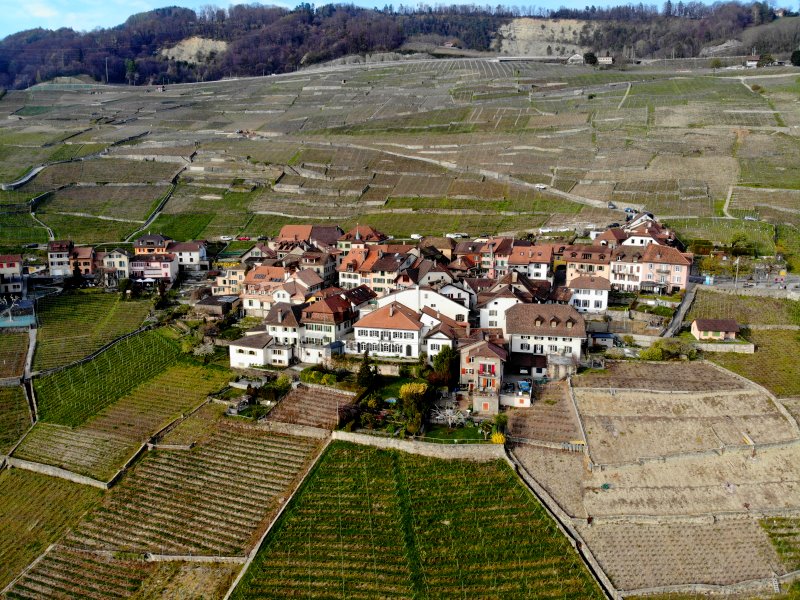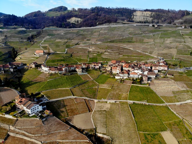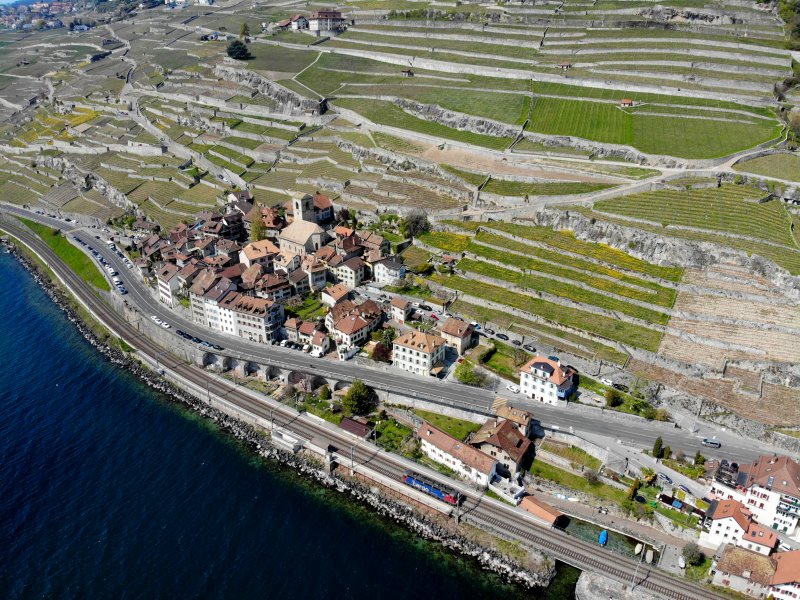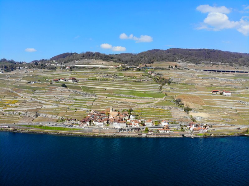 | Blick auf Saint-Saphorin. Schweiz, Kanton Vaud 16.04.2021; Flug Nr. 507 |