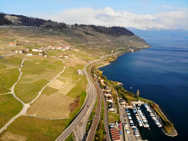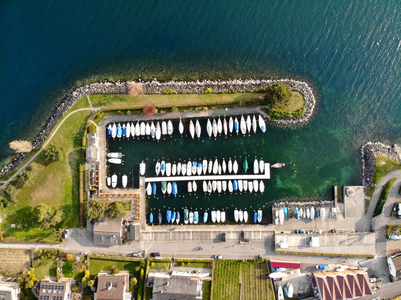 | Blick auf den Yachthafen von Cully. Schweiz, Kanton Vaud 16.04.2021; Flug Nr. 508 |