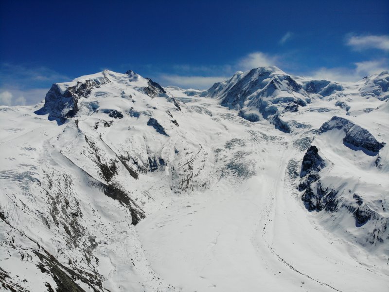| Blick auf den Monte Rose, Grenzgletscher und den Liskamm. Schweiz, Kanton Wallis 17.04.2021; Flug Nr. 509 |
