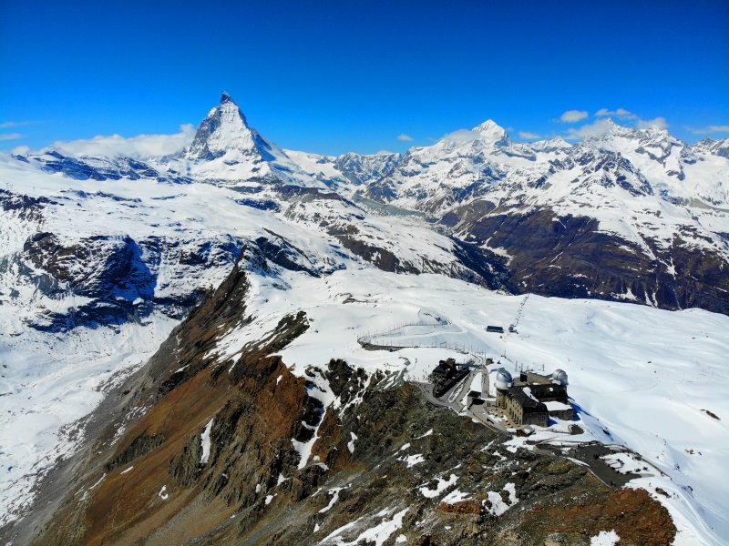 | Blick über den Gornergrat zum Matterhorn. Schweiz, Kanton Wallis 17.04.2021; Flug Nr. 509 |