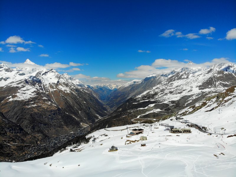 | Blick über die Riffelalp in das Mattertal. Schweiz, Kanton Wallis 17.04.2021; Flug Nr. 510 |