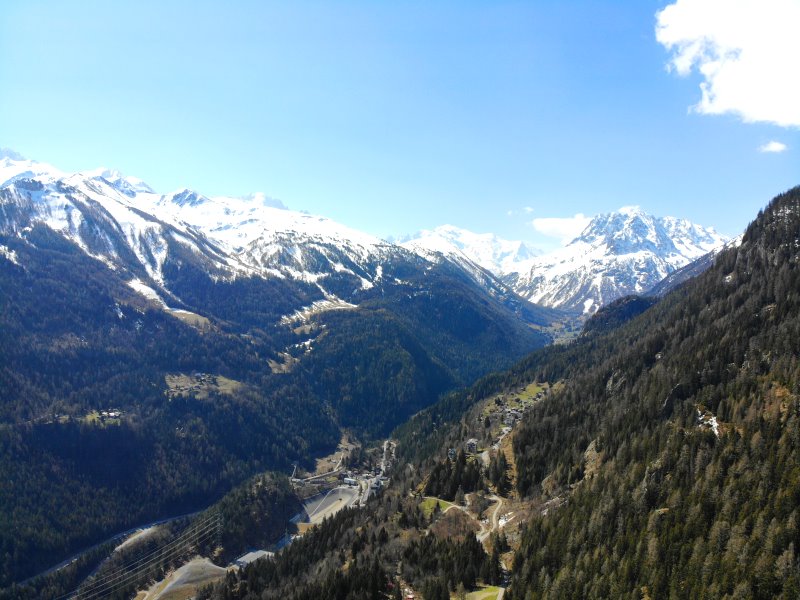 | Ein Flug bei Finhaut mit Blick zum Mont Blanc. Schweiz, Kanton Wallis 24.04.2021; Flug Nr. 511 |