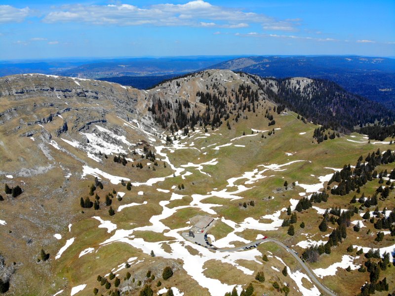 | Der Pass auf der Nordroute zum La Dôle. Mit Blick nach Frankreich. Schweiz, Kanton Waadt 25.04.2021; Flug Nr. 512 |