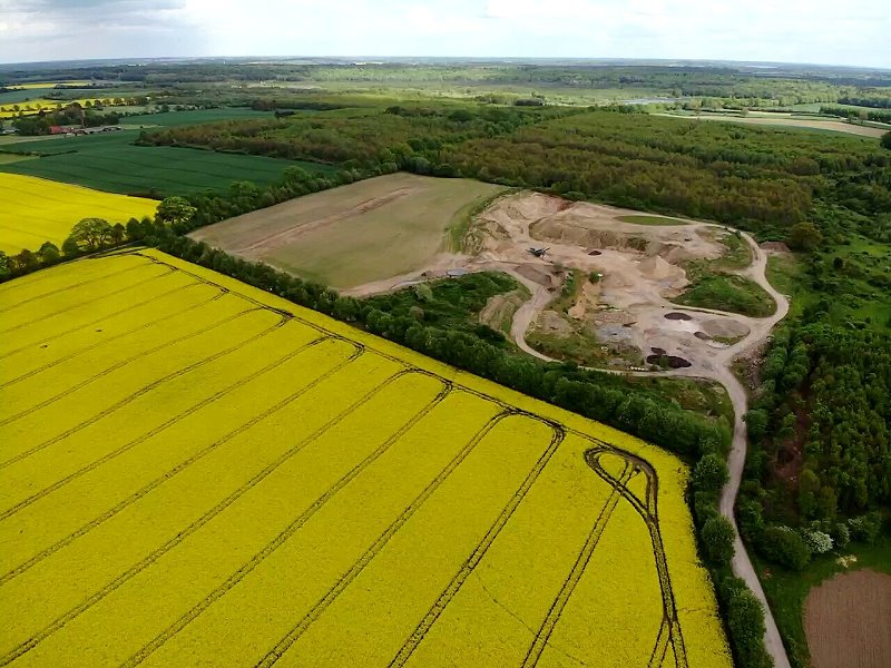 | Ein Rapsfeld und eine Kiesgrube bei Ratzeburg. Deutschland, Schleswig-Holstein 23.05.2021; Flug Nr. 519  |
