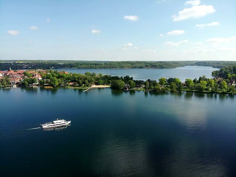 | Das Fahrgastschiff M/S "Heinrich der Löwe" nähert sich der Anlegestelle am Lüneburger Damm in Ratzeburg. Deutschland, Schleswig-Holstein 29.05.2021; Flug Nr. 522  |