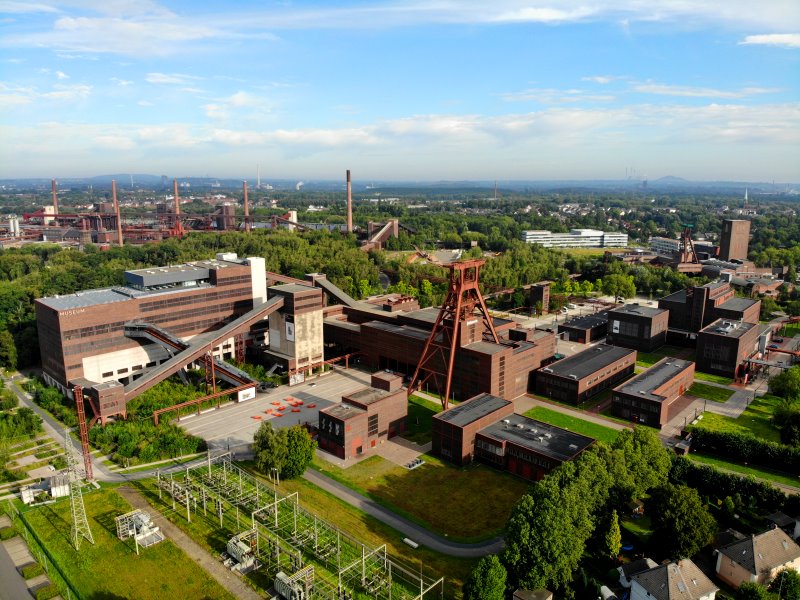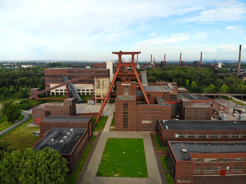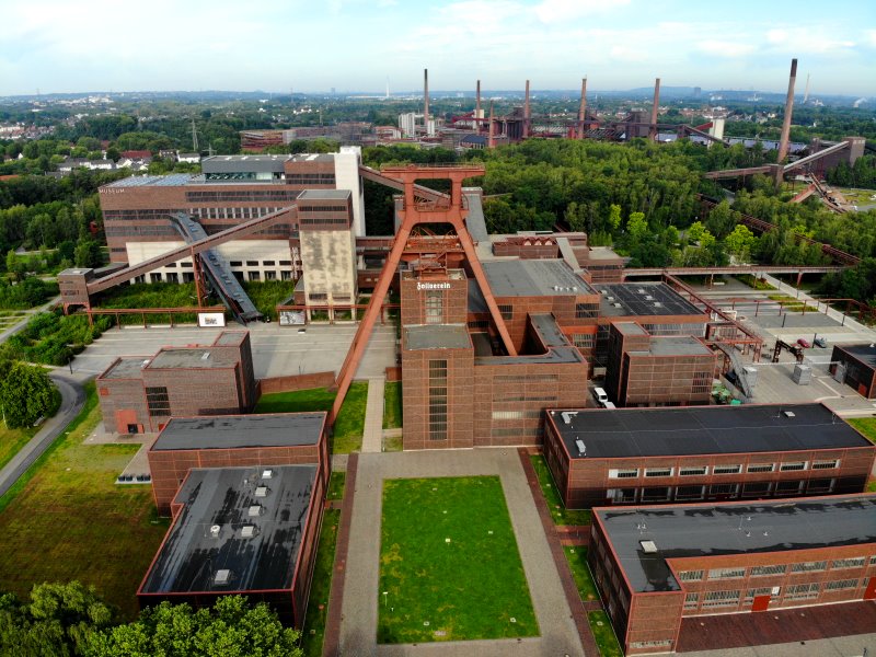 | Die ehemalige Zeche Zollverein Schachtanlagen 12 in Essen. Deutschland, Nordrhein-Westfalen 15.08.2021; Flug Nr. 579  |