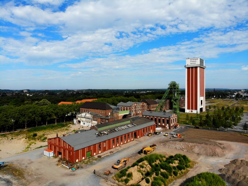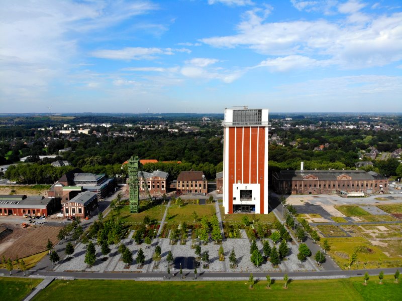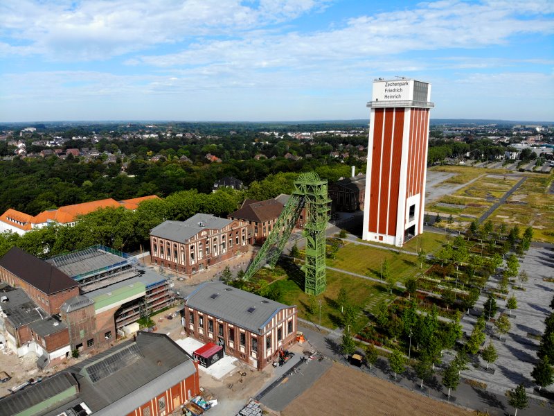 | Die ehemalige Zeche Friedrich Heinrich 1/2 in Kamp-Linfort. Deutschland, Nordrhein-Westfalen 15.08.2021; Flug Nr. 581  |