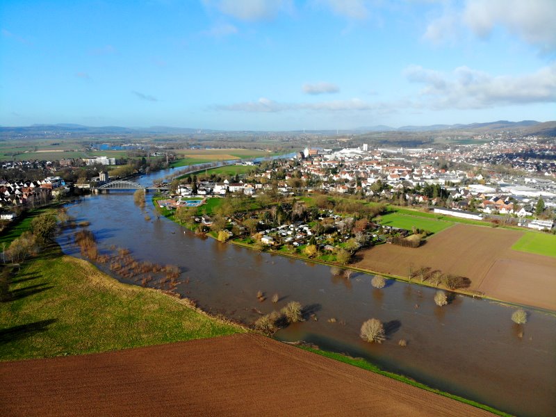 | Weserhochwasser bei Rinteln. Deutschland, Niedersachsen 23.02.2022; Flug Nr. 641 |