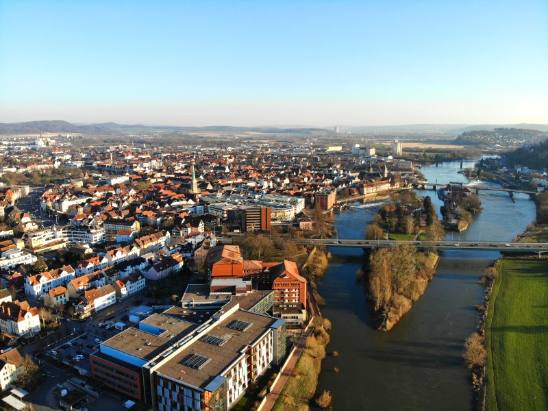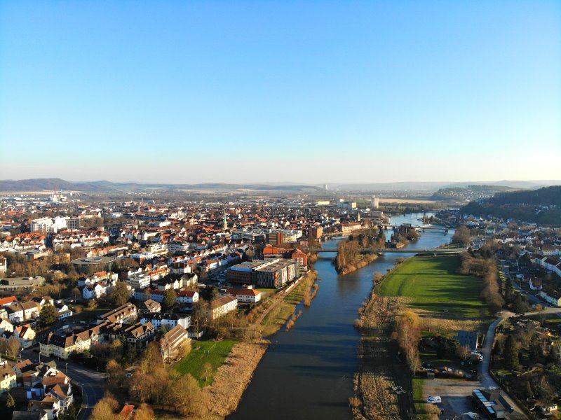 | Die Weser bei Hameln. Deutschland, Niedersachen 02.03.2022; Flug Nr. 651 |