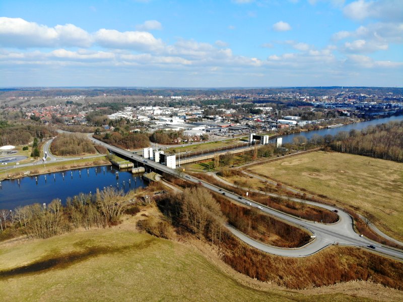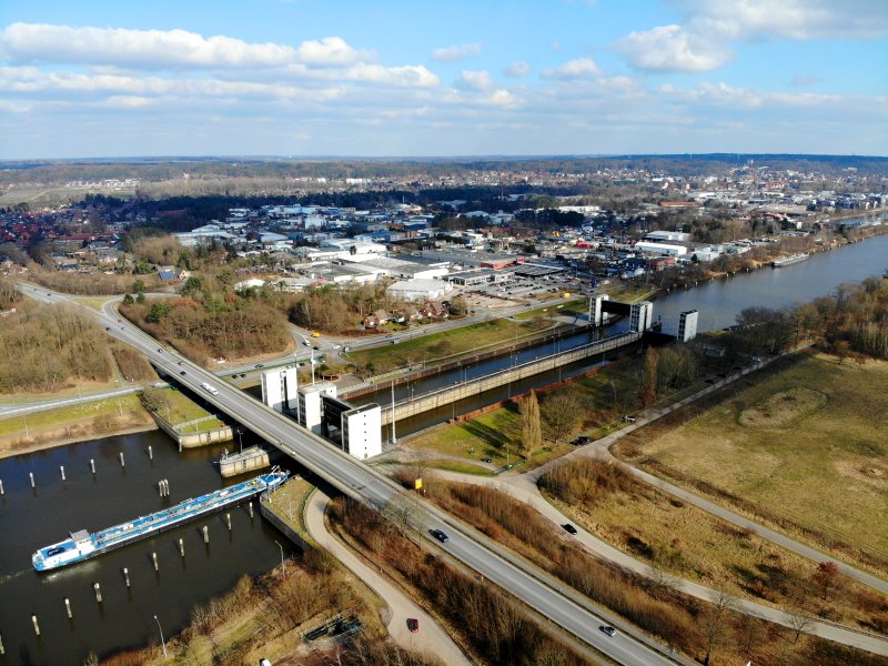 | Die Elbschleuse Geesthacht. Deutschland, Schleswig-Holstein 05.03.2022; Flug Nr. 652 |