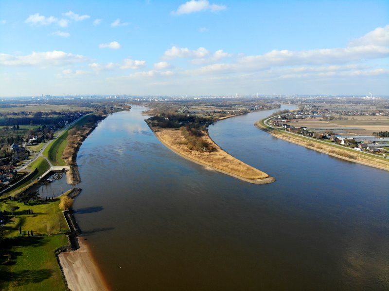 | Die Bunthäuser Spitze am Flusskilometer 609. Hier trennt sich die Elbe in Süderelbe und Norderelbe. Deutschland, Niedersachsen / Hamburg 05.03.2022; Flug Nr. 653 |