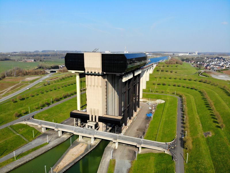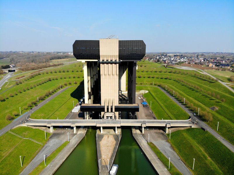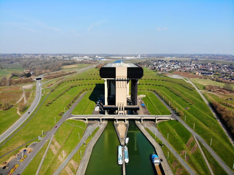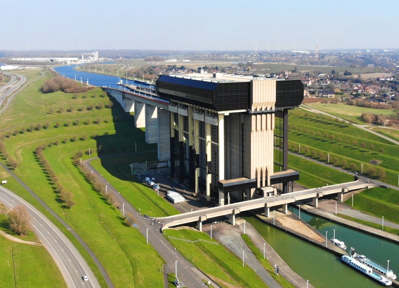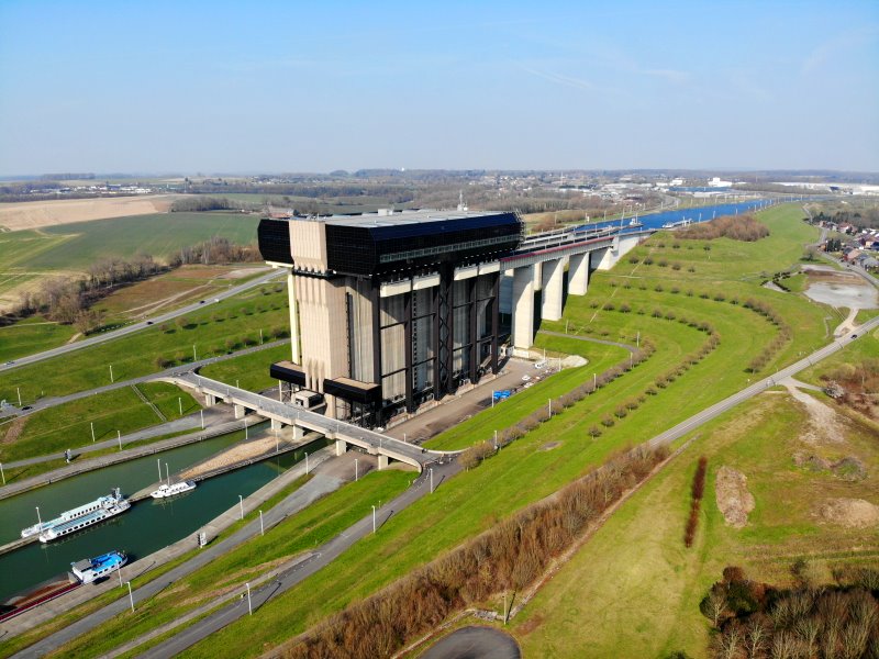 | Das Schiffshebewerk Strépy-Thieu am Canal du Centre. Belgien, Provinz Hennegau 06.03.2022; Flug Nr. 654 |