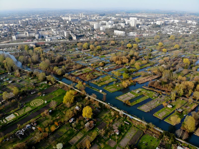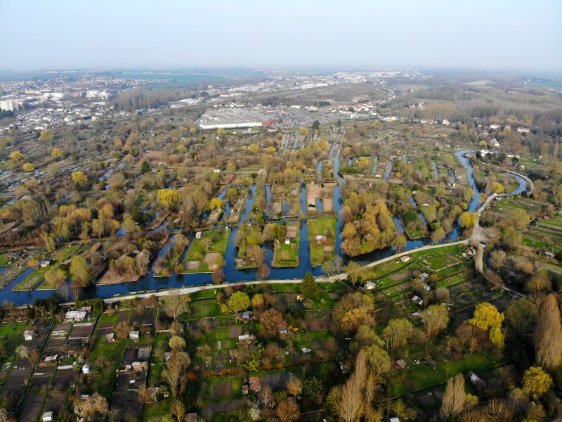 | Die Inselgärten von Bourges. Frankreich, Département Cher 19.03.2022; Flug Nr. 655 |