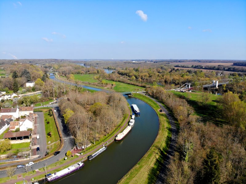 | Der Canal latéral à la Loire in Châttilon-sur-Loire. Frankreich, Département Loiret 03.04.2022; Flug Nr. 668 |