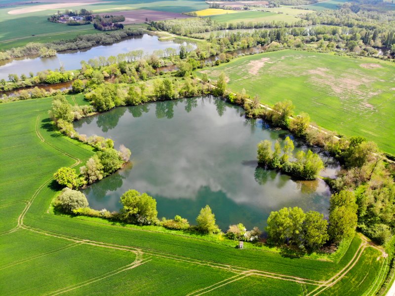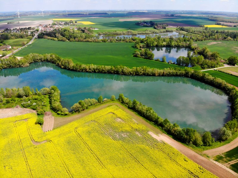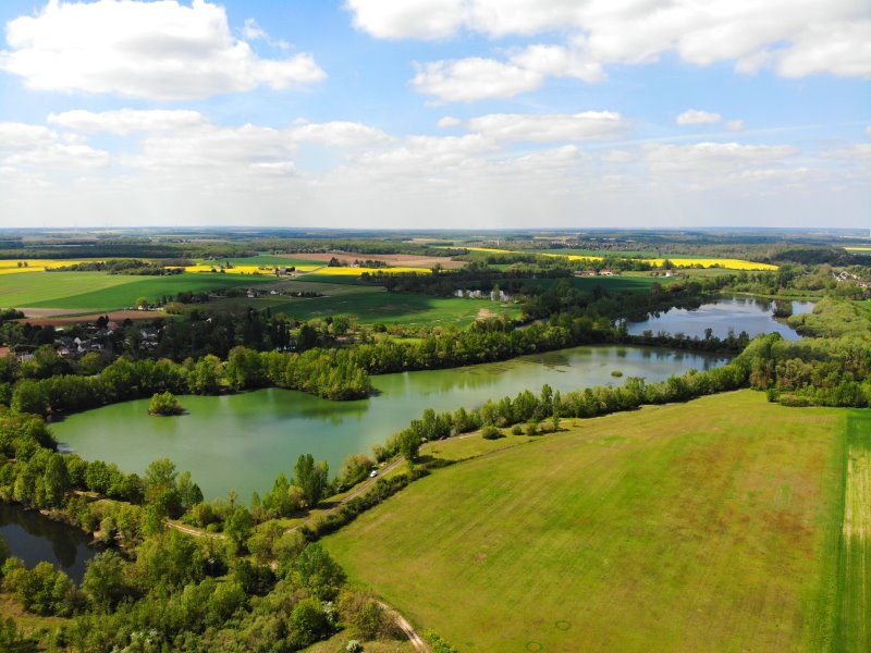 | Flug über die Seenlandschaft am Cher bei Ste-Thorette. Frankreich, Département Cher 26.04.2022; Flug Nr. 694 |