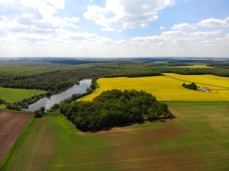 | Landschaft bei Ste-Thorette. Frankreich, Département Cher 26.04.2022; Flug Nr. 694 |