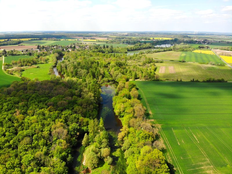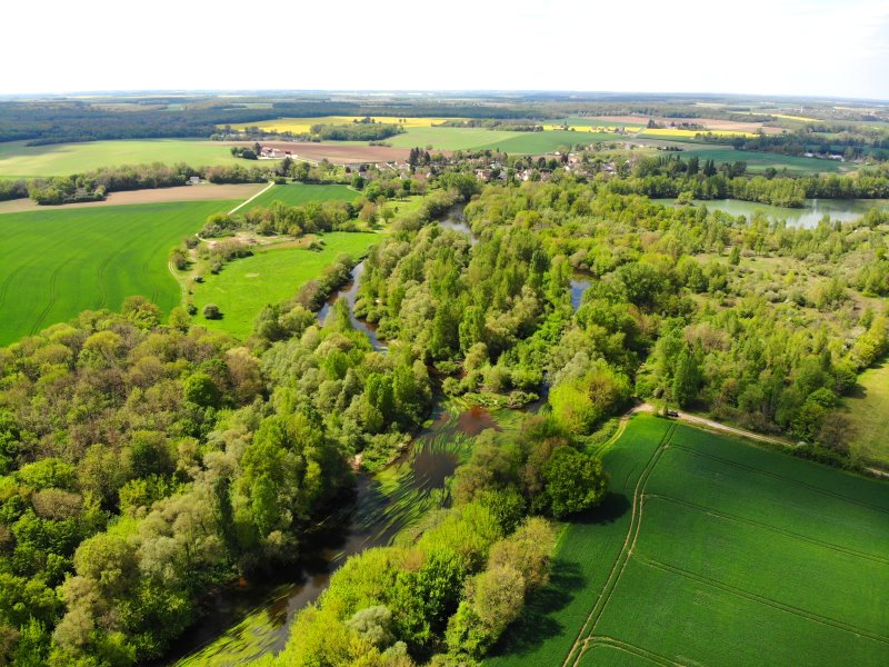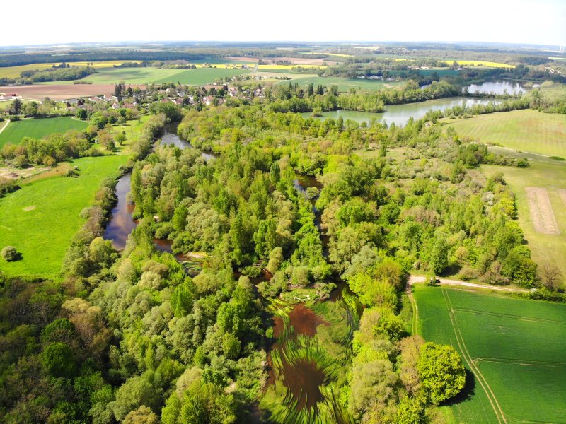 | Eine Flußaue des Chers bei Ste-Thorette. Frankreich, Département Cher 26.04.2022; Flug Nr. 695 |