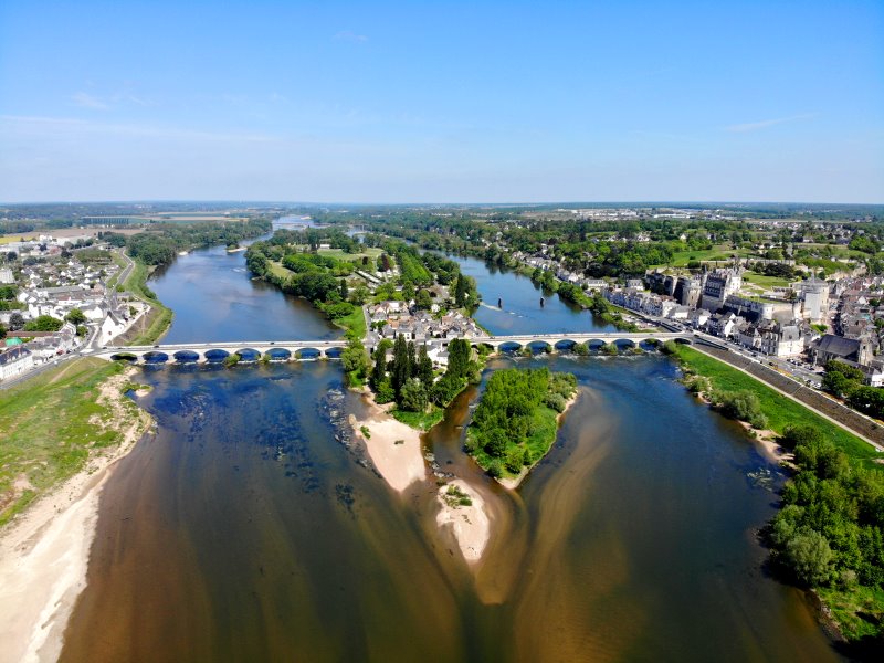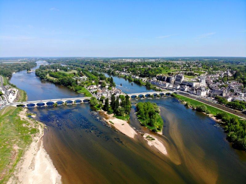 | Blick über die Loire auf Amboise. Frankreich, Département Indre-et-Loire 01.05.2022; Flug Nr. 702 |