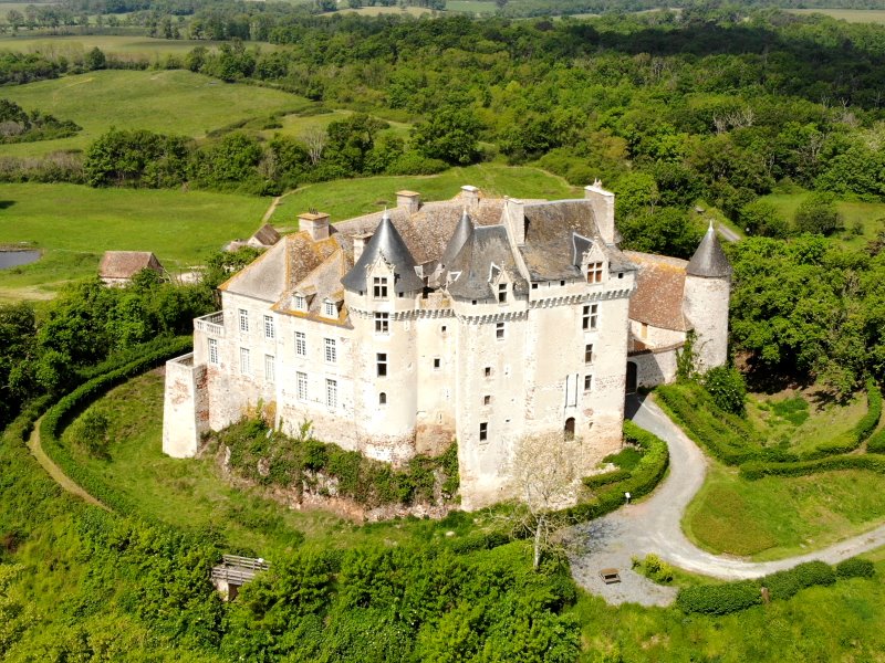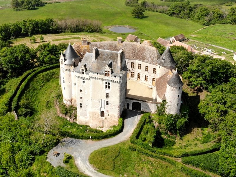 | Das Château Palluau. Frankreich, Département Indre 06.05.2022; Flug Nr. 707 |