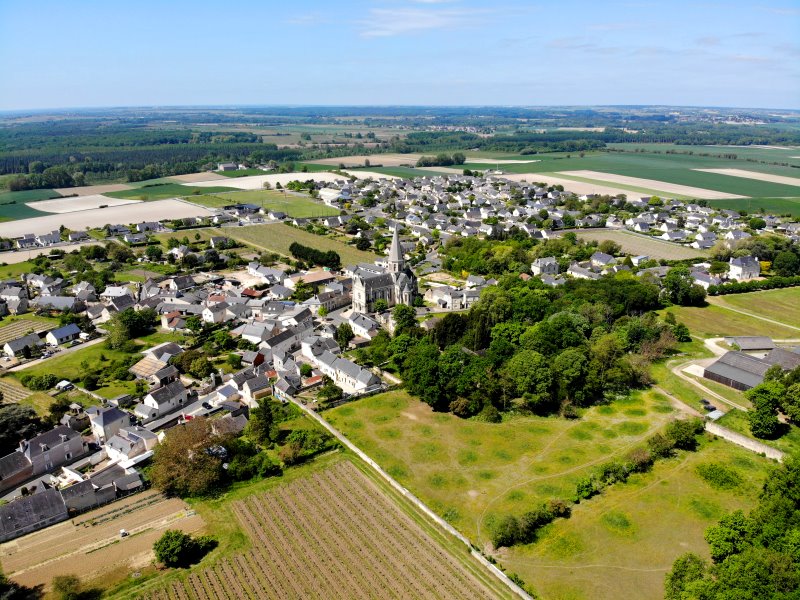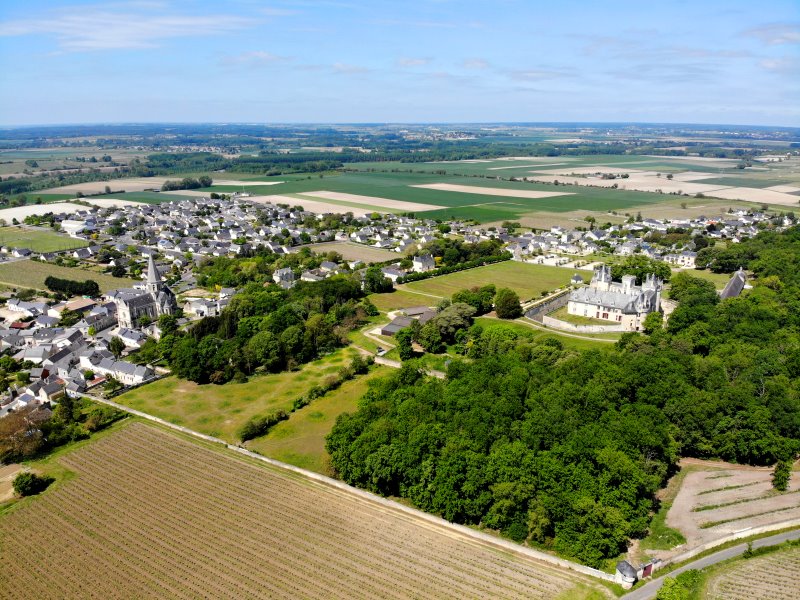 | Bellevigne-les-Châteaux und das Châteaux de Brézé. Frankreich, Département Maine-et-Loire 07.05.2022; Flug Nr. 713 |