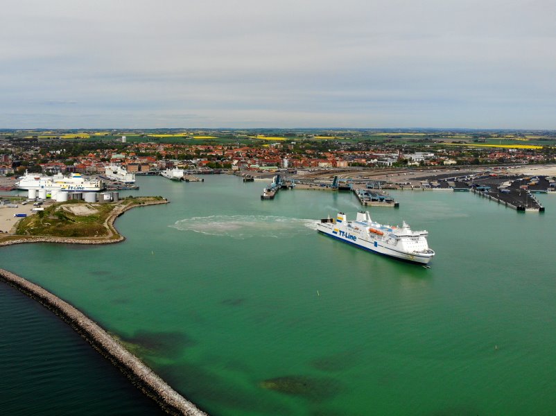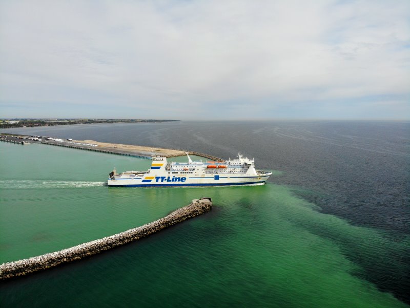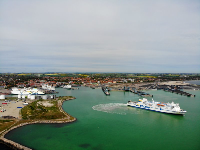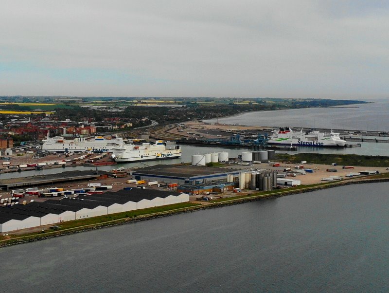 | Der Fährhafen von Trelleborg. Schweden, Skåne 16.05.2022; Flug Nr. 728 |