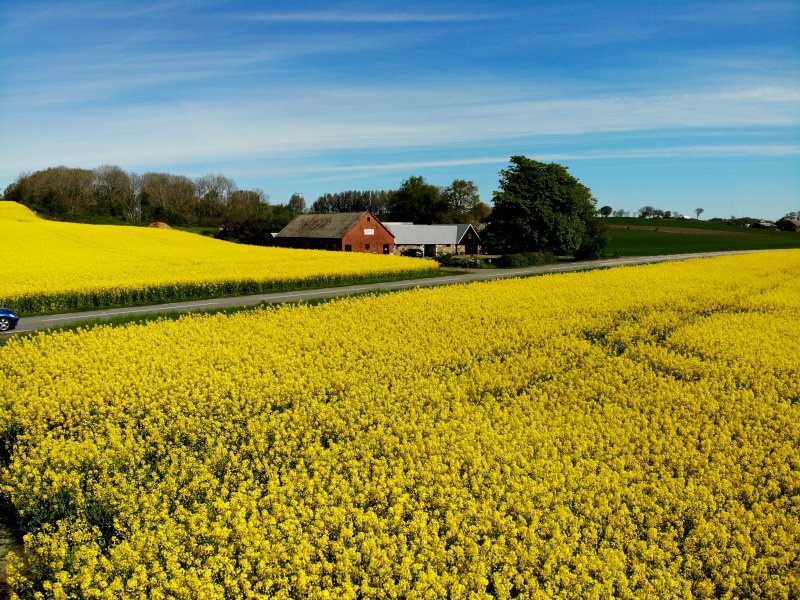 | Ein blühendes Rapsfeld bei Skilling. Schweden, Skåne 17.05.2022; Flug Nr. 731 |