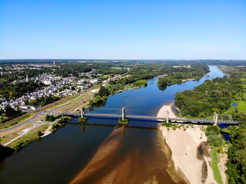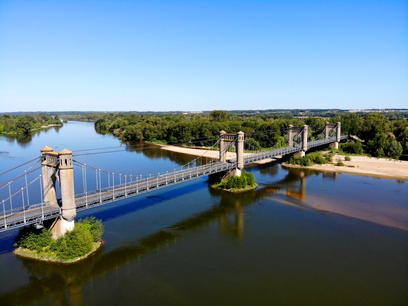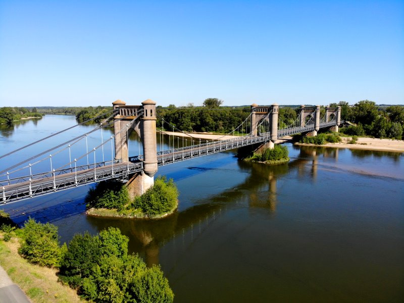 | Die Loirebrücke von Langeais. Frankreich, Département Indre-et-Loire 09.07.2022; Flug Nr. 762 |