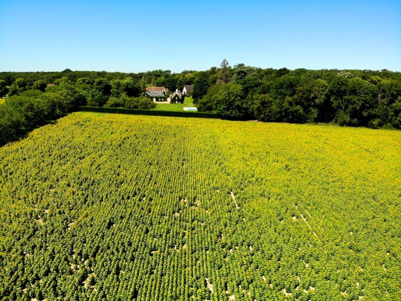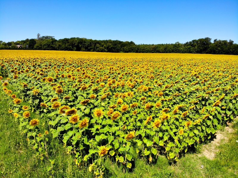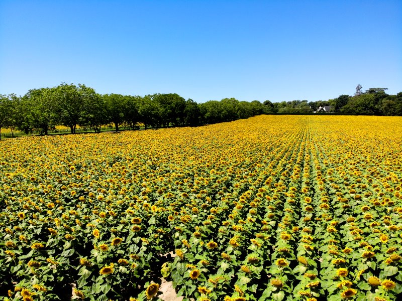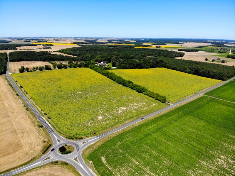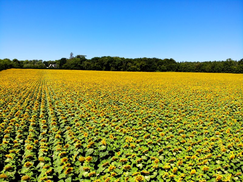 | Ein Sonnenblumenfeld bei Sainte-Thorette. Frankreich, Département Cher 11.07.2022; Flug Nr. 764 |